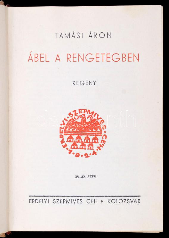 Tamási Áron: Ábel a rengetegben. Kolozsvár, 1934, Erdélyi Szépmíves Cé... https://www.darabanth.com/hu/266-Gyorsarveres/266.0/Konyvek/Konyvek-Egyeb-ritkasagok~500026/Tamasi-Aron-Abel-a-rengetegben-Kolozsvar-1934-Erdelyi-Szepmives-Ceh-Kiadoi-egeszvasz~II1285253