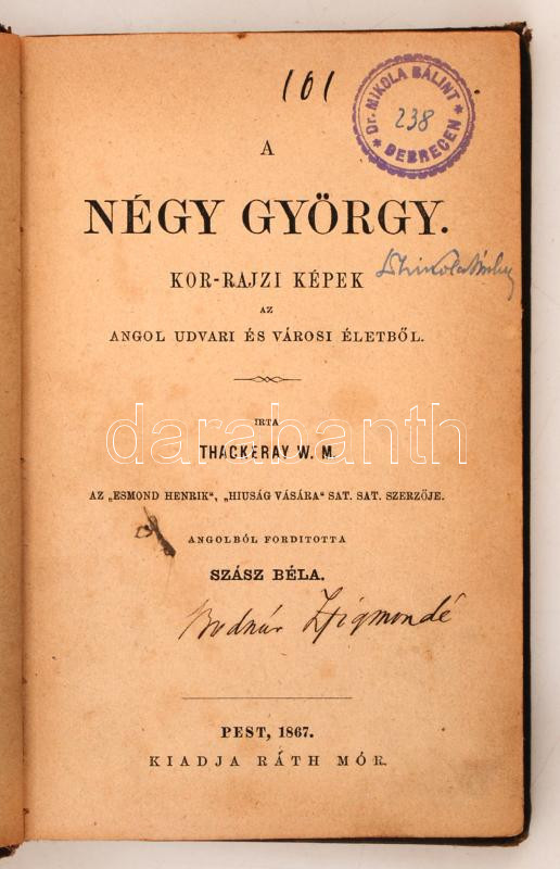 Thackeray W.M.: A négy György. Kor-rajzi képek angol udvari és városi ... https://www.darabanth.com/hu/266-Gyorsarveres/266.0/Konyvek/Konyvek-Egyeb-ritkasagok~500026/Thackeray-WM-A-negy-Gyorgy-Kor-rajzi-kepek-angol-udvari-es-varosi-eletbol-Pest-1867-RC3~II1335580