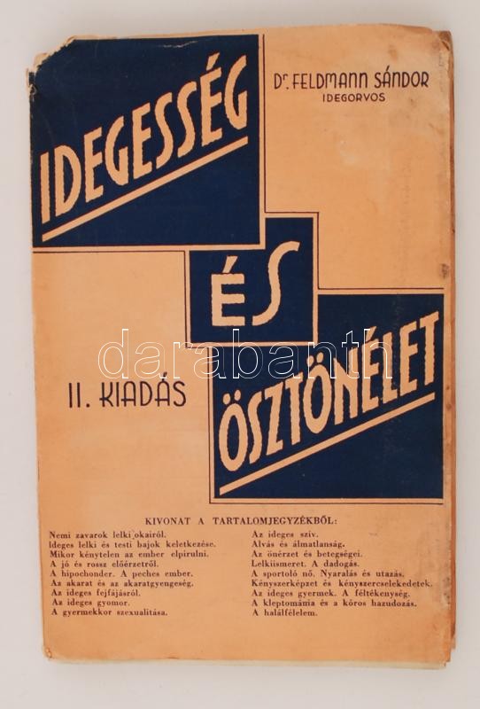 Feldmann Sándor: Idegesség és ösztönélet. Tanulmányok a pszichopatolog... https://www.darabanth.com/hu/266-Gyorsarveres/266.0/Konyvek/Konyvek-Tudomany-es-technika~36/Feldmann-Sandor-Idegesseg-es-osztonelet-Tanulmanyok-a-pszichopatologia-es-sexualpatologia~II1320715