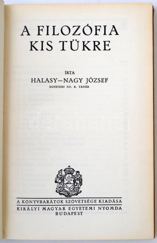 Halasy-Nagy József: A filozófia kis tükre. Bp. é.n., Egyetemi Ny. 210 ... https://www.darabanth.com/hu/266-Gyorsarveres/266.0/Konyvek/Konyvek-Tudomany-es-technika~36/Halasy-Nagy-Jozsef-A-filozofia-kis-tukre-Bp-en-Egyetemi-Ny-210-p-Kiadoi-felvaszonkot~II1335044