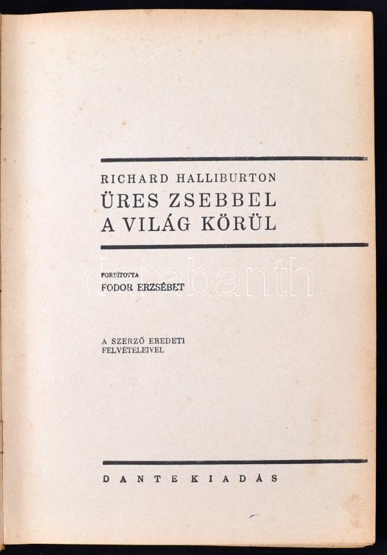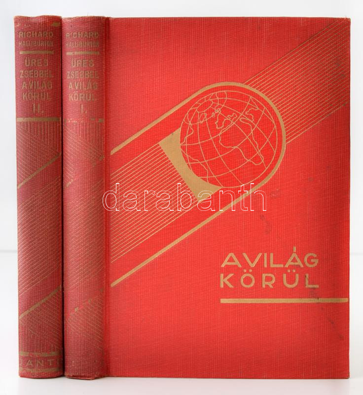 Leírás: Richard Halliburton: Üres zsebbel a világ körül I-II. Ford. Fodor Erzsébet. Bp., 1931, Dante kiadó. Kiadói aranyozott egészvászon-kötésben, enyhén kopottas gerinccel.