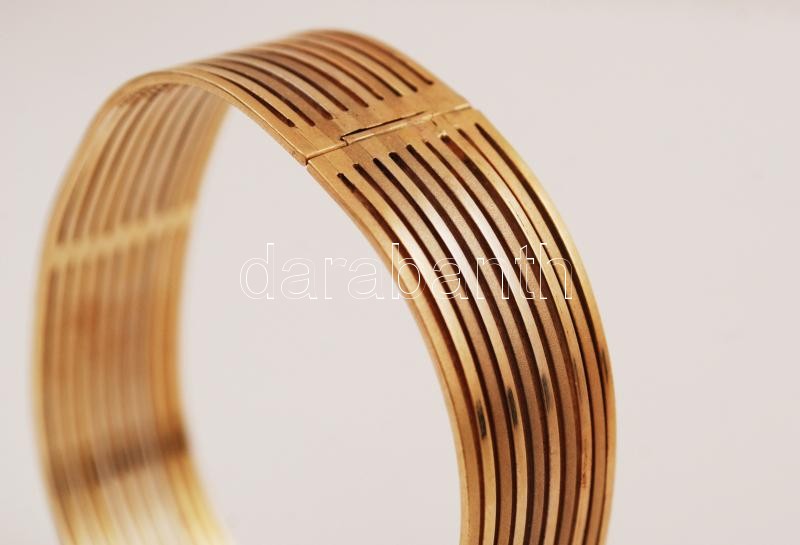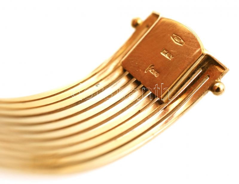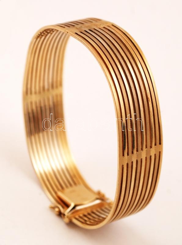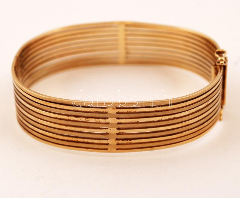 Leírás: 14 K arany karkötő áttört fazon, kapcsos szerkezettel. Jelzett. Nettó 32 g / 14 C gold bracelet net: 32 g
