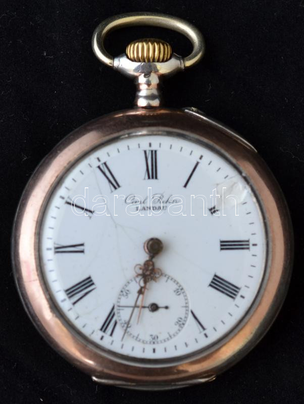 Aranyozott ezüst zsebóra, Carl Rehn, Landau, Ag., bruttó:75,8gr., jelzett, működik, hibás számlappal, d:4,5cm /Gold-plated silver pocket watch, Karl Rehn, Landau, Ag, gross:.. 75,8gr, marked, operate, faulty dial, d: 4.5cm