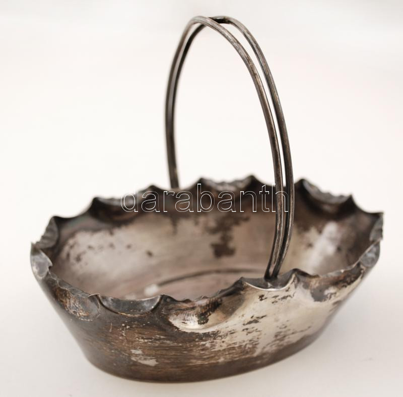 Leírás: Ezüst (Ag,) kosár, jelzett, mesterjeggyel, nettó:134g, 16×11cm, m:13 cm
