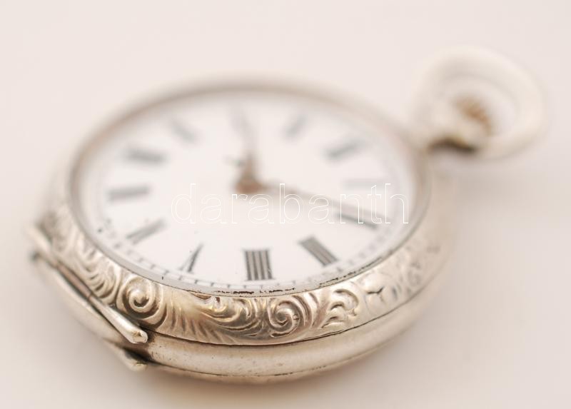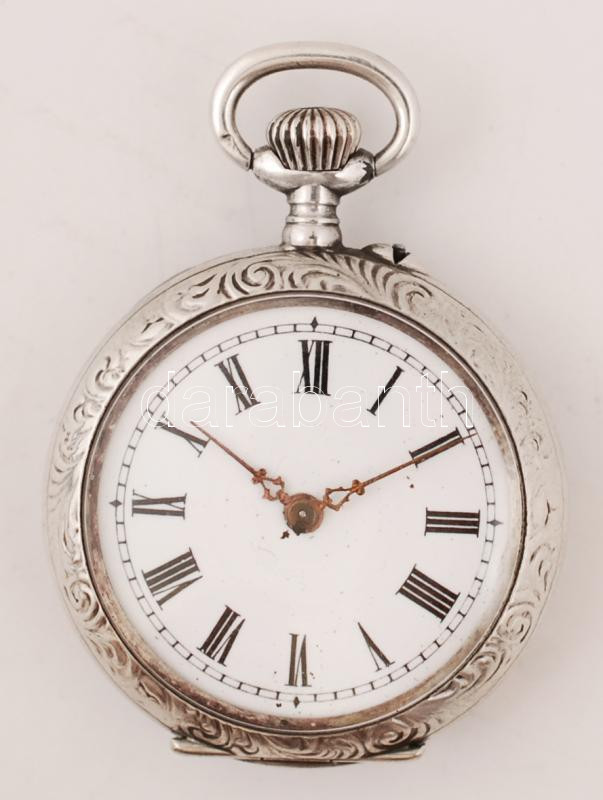Ezüst zsebóra, Ag.,bruttó:21,3gr., jelzett, nem működik, d:2,7cm/Silver pocket watch, Ag, gross:.. 21,3gr, marked, does not work, d: 2,7cm