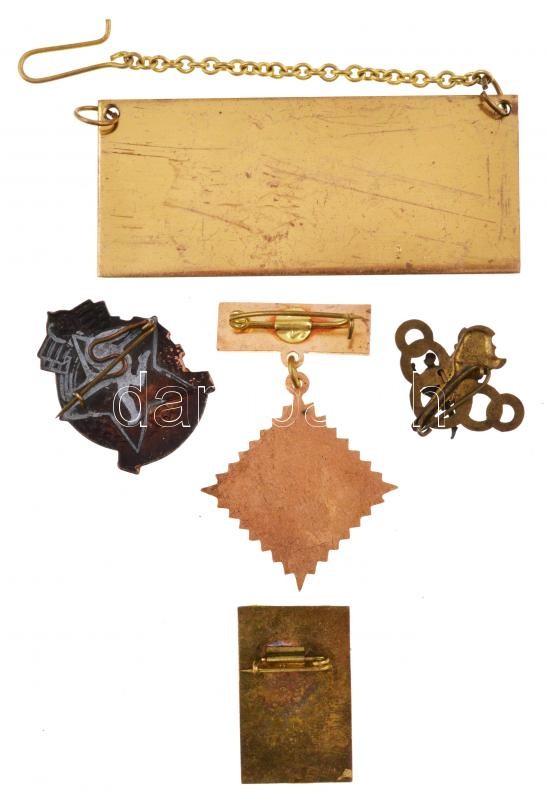 Leírás: 5db klf szocialista jelvény, közte "100km a Vörös Hadsereg nyomán" zománcozott fém jelvény + "MHK (Munkára harcra kész) I." zománcozott fém jelvény T:2
