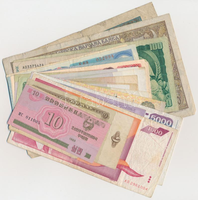 30db-os vegyes külföldi bankjegy tétel, közte Csehszlovákia, Észak-Korea, Szovjetunió T:III,III-