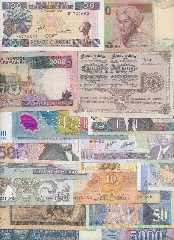 31db-os vegyes külföldi bankjegy, szükségpénz tétel, közte Indonézia, Irán, Románia, Burma pénzei T:I-III