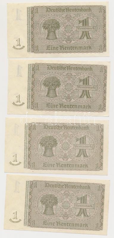 German Third Reich 1937. 1 Mark (4x) sequential serials in pairs C:UNC,AU