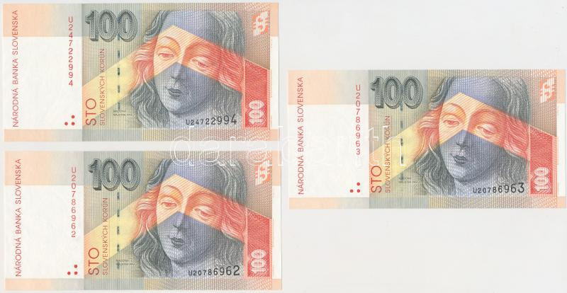 Slovakia 2001. 100 Korun (3x), 2pcs with sequential serials C:UNC,AU
