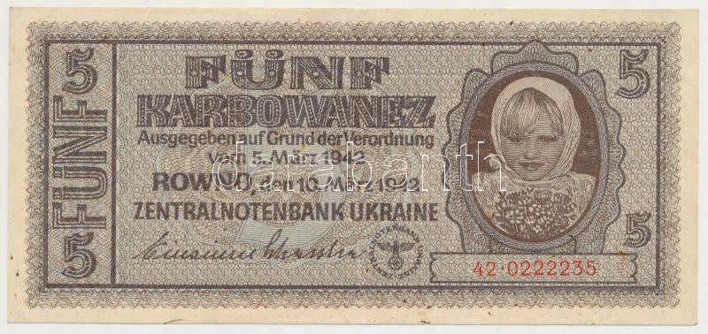 Ukraine / German occupation 1942. 5 Karbowanez C:VF