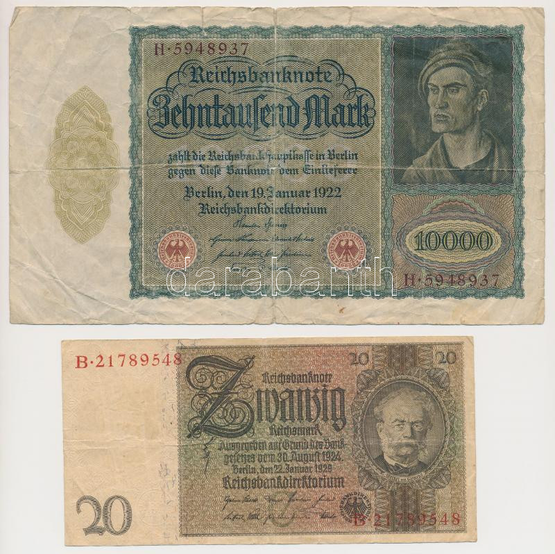 Vegyes: Németország / Weimari Köztársaság 1922. 10.000M + 1929. 20M + ... https://www.darabanth.com/hu/266-Gyorsarveres/266.0/Numizmatika/Kulfoldi-bankjegyek~500011/Vegyes-Nemetorszag-Weimari-Koztarsasag-1922-10000M-plus-1929-20M-plus-Orosz-Birodalom-1912-1917~II1331082