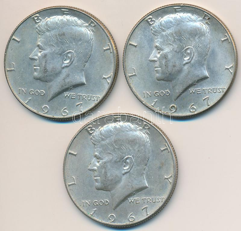 Leírás: Amerikai Egyesült Államok 1967. 1/2$ Ag "Kennedy" (3x) T:2