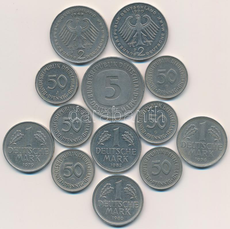 FR... https://www.darabanth.com/hu/266-Gyorsarveres/266.0/Numizmatika/Kulfoldi-fem-es-ezustpenzek~500012/NSZK-1950-1990-50pf-6xklf-plus-1M-4xklf-plus-2M-2xklf-plus-5M-T2-2---FRG-1950-1990-50-Pfennig-6xdif~II1333770
