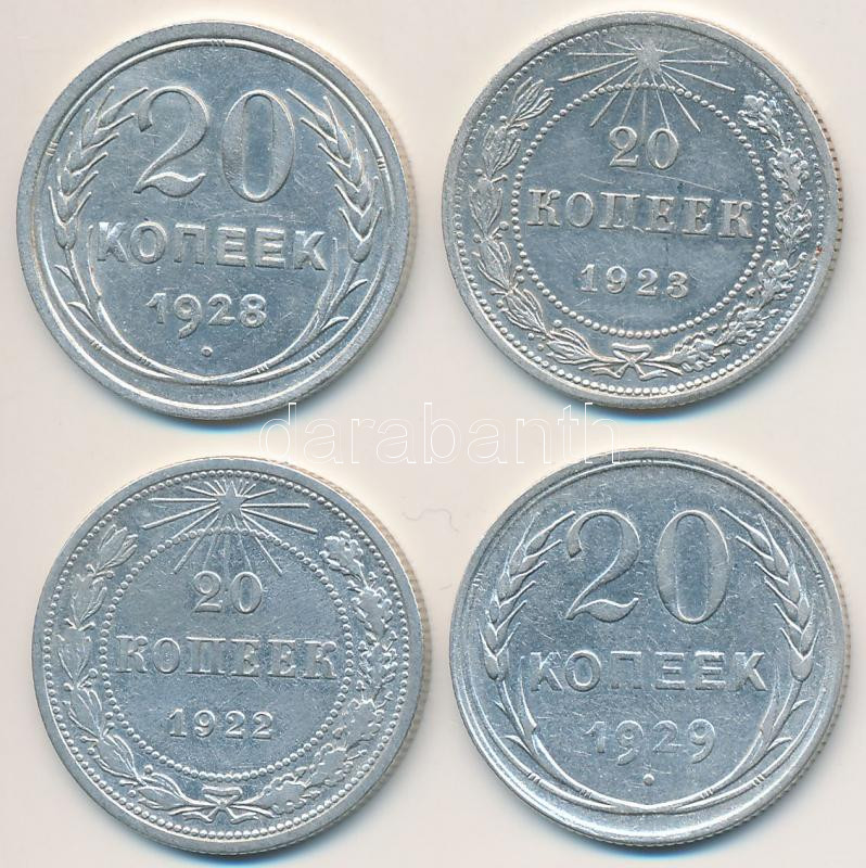 Szocialista Szövetségi Szovjet Köztársaság 1922-1923. 20k Ag (2x) + Szovjetunió 1928-1929. 20k Ag (2x) T:2,2-