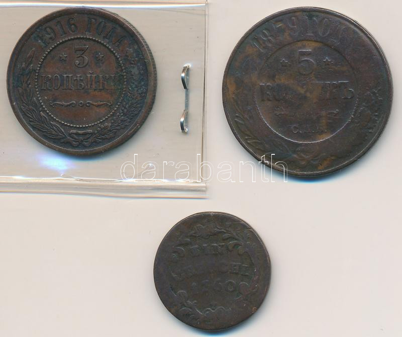Vegyes: Csehország / Történelmi tartomány 1760. 1 Garas Cu + Orosz Birodalom 1879. 5k Cu + 1916. 3k Cu T:2-,3,2