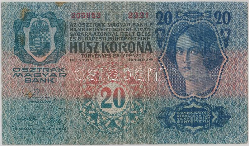 1913. 20K román felülbélyegzéssel T:III fo. https://www.darabanth.com/hu/266-Gyorsarveres/266.0/Numizmatika/Magyar-bankjegyek~500022/1913-20K-roman-felulbelyegzessel-TIII-fo~II1331581