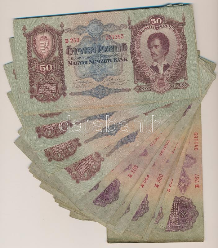1930. 100P (20x) + 1932. 50P (6x) T:III https://www.darabanth.com/hu/266-Gyorsarveres/266.0/Numizmatika/Magyar-bankjegyek~500022/1930-100P-20x-plus-1932-50P-6x-TIII~II1333535