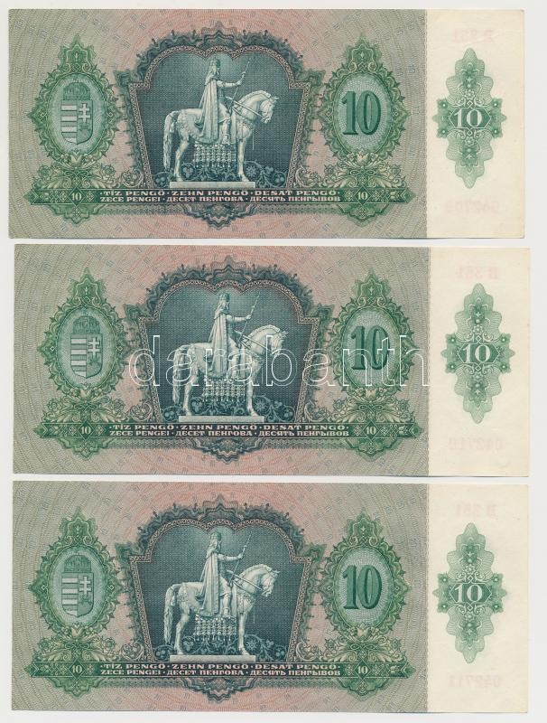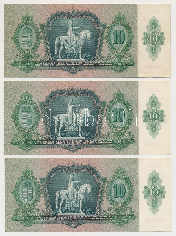 1936. 10P (6x) sorszámkövetők T:I,I- https://www.darabanth.com/hu/266-Gyorsarveres/266.0/Numizmatika/Magyar-bankjegyek~500022/1936-10P-6x-sorszamkovetok-TI-I-~II1330510
