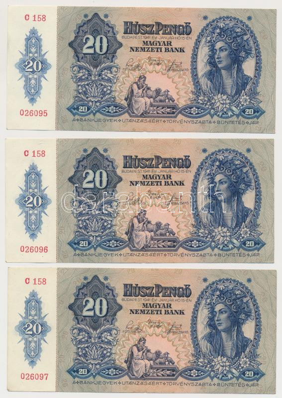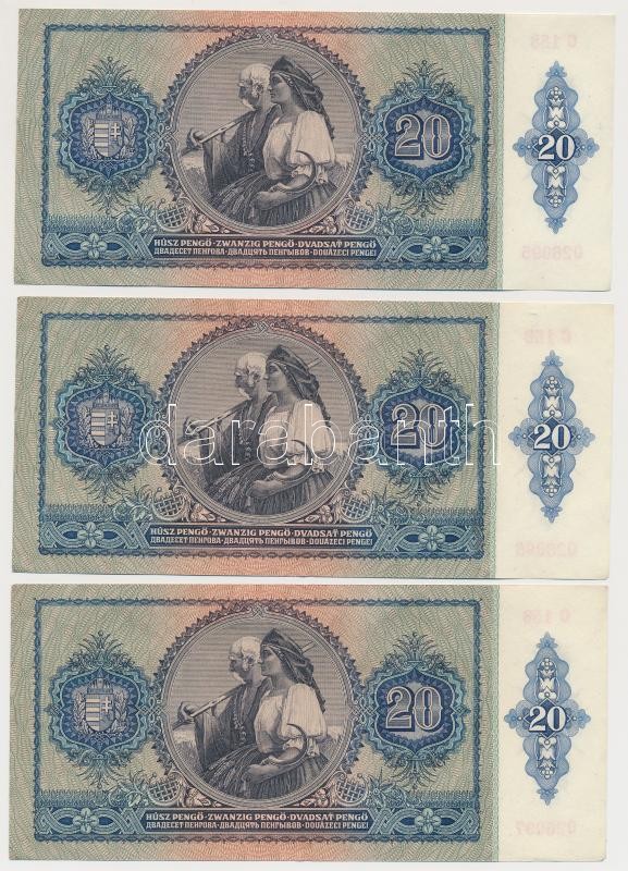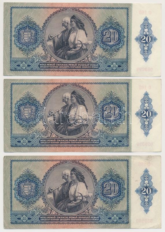 1941. 20P (6x) sorszámkövetők (2x3) T:I,I- https://www.darabanth.com/hu/266-Gyorsarveres/266.0/Numizmatika/Magyar-bankjegyek~500022/1941-20P-6x-sorszamkovetok-2x3-TI-I-~II1330508
