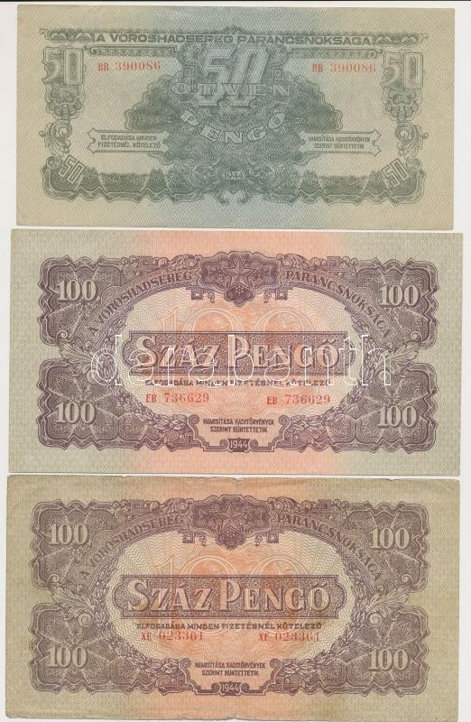 Leírás: 1944. 1P-100P (10x) "A Vörös Hadsereg Parancsnoksága" T:III