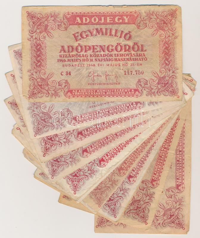 1946. 1.000.000AP (15x) T:III,III- https://www.darabanth.com/hu/266-Gyorsarveres/266.0/Numizmatika/Magyar-bankjegyek~500022/1946-1000000AP-15x-TIII-III-~II1333919