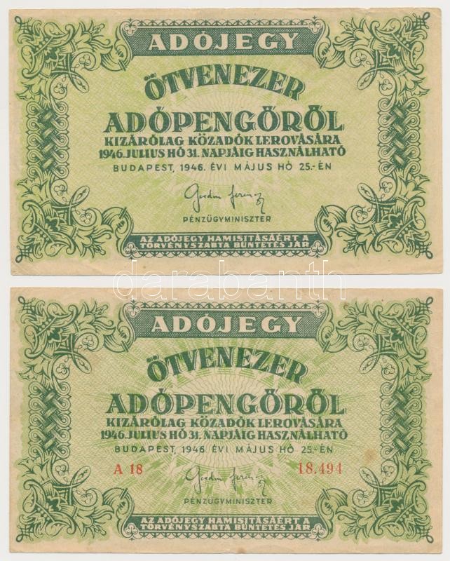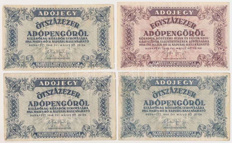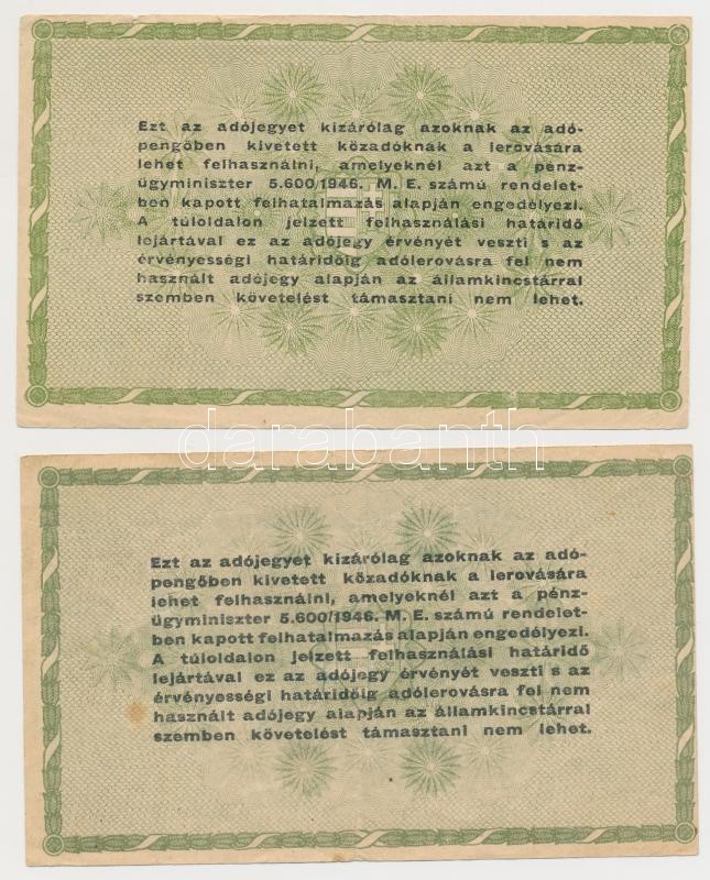 Leírás: 1946. 10db-os vegyes magyar adópengő bankjegy tétel, közte egy sorozat- és sorszámmal T:I-III