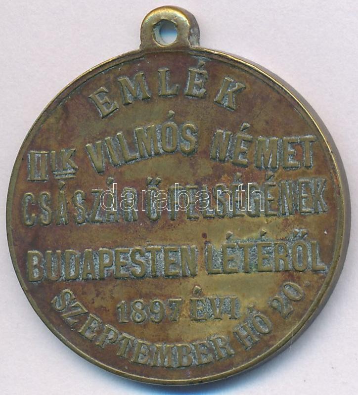 1897. "II. Vilmos látogatása Budapesten" fém emlékérem füllel "II. VILMOS - I. FERENCZ JÓZSEF / EMLÉK II-ik VILMÓS NÉMET CSÁSZÁR Ő FELSÉGÉNEK BUDAPESTEN LÉTÉRŐL 1897 ÉVI SZEPTEMBER HÓ 20." (29,5mm) T:2
