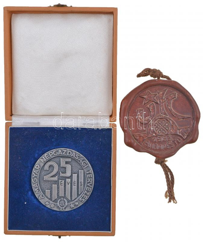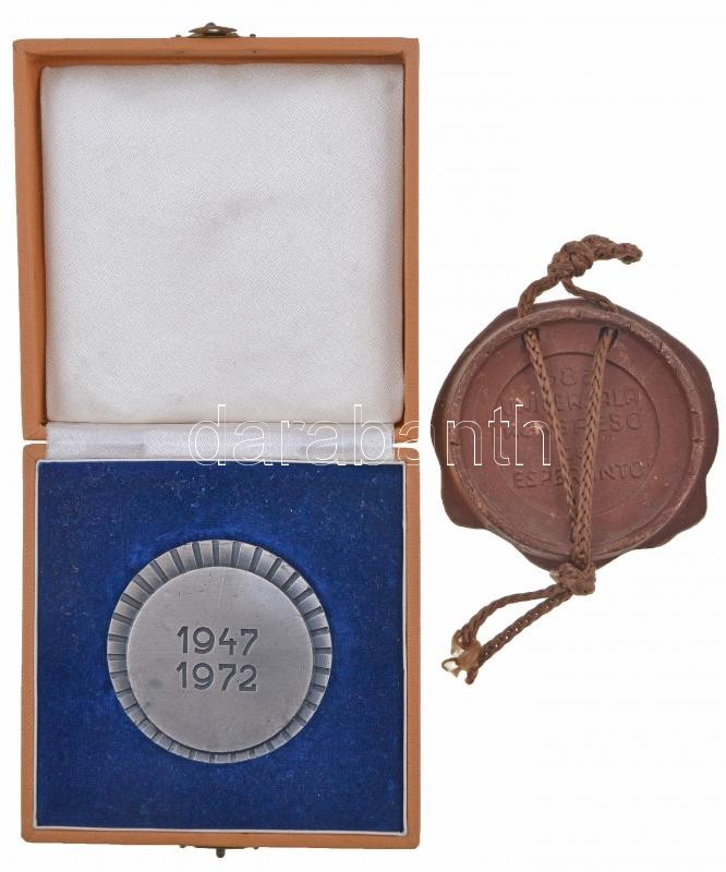 1972. "A Magyar Népgazdasági Tervezés 25 éves / 1947-1972" fém emlékérem eredeti tokban (60mm) + 1983. "68. Eszperantó Kongresszus Budapest" festett kerámia pecsét alakú plakett (78mm) T:2,2- lepattanások