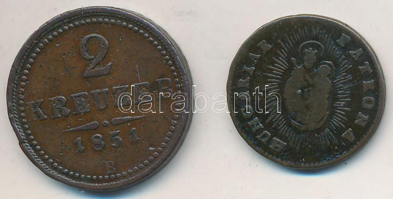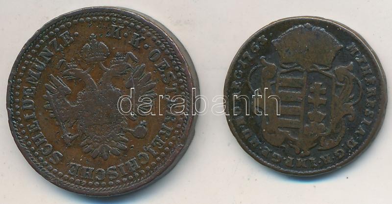 Leírás: 1763. Rézdénár "Mária Terézia" zárt korona + 1851B 2kr Cu T:2-,3