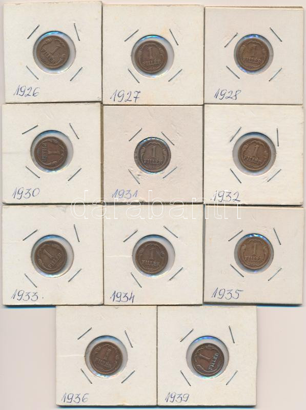 1926-1939. 1f Br (11xklf) T:2,2- https://www.darabanth.com/hu/266-Gyorsarveres/266.0/Numizmatika/Magyar-es-magyar-verdejelu-fem-es-ezustpenzek~500008/1926-1939-1f-Br-11xklf-T2-2-~II1336220