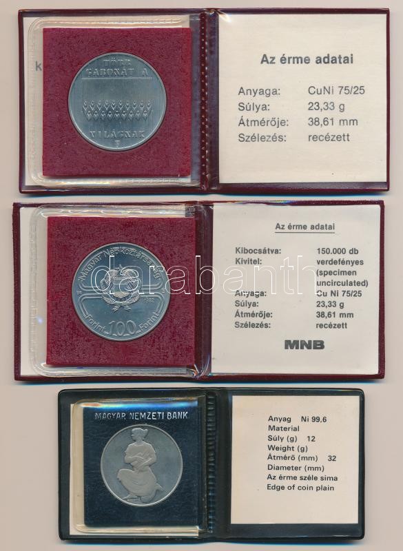Leírás: 1981-1983. 100Ft "FAO" eredeti tokban tanúsítvánnyal (2xklf) + 1982. 100Ft "Labdarúgó VB 1982" tokban tanúsítvánnyal T:BU