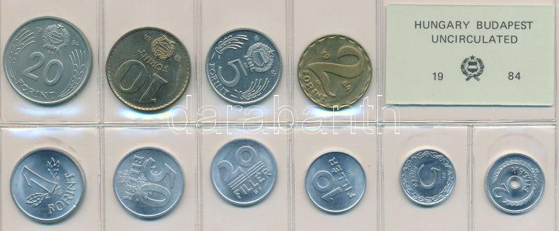 Leírás: 1984. 2f-20Ft 10db klf, érmés forgalmi sor fóliatokban T:1