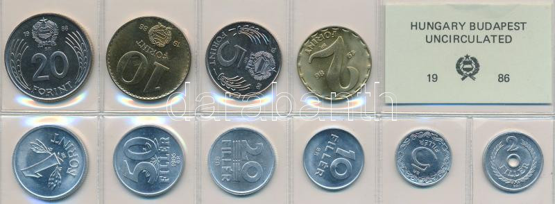 Leírás: 1986. 2f-20Ft 10db klf érmés forgalmi sor fóliatokban T:1