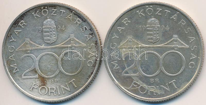 Leírás: 1994. 200Ft Ag "Deák" (2x) T:2,2-