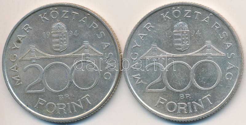 Leírás: 1994. 200Ft Ag "Deák" (2x) T:2