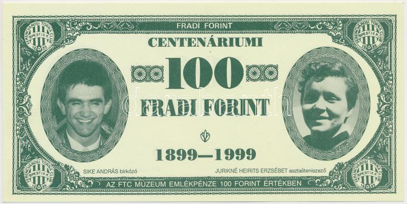 1999. 100Ft névértékű " Centenáriumi Fradi Forint" Sike, Jur... https://www.darabanth.com/hu/266-Gyorsarveres/266.0/Numizmatika/Papir-es-fem-szuksegpenzek~500006/1999-100Ft-neverteku-Centenariumi-Fradi-Forint-Sike-Jurikne-Meszaros-Dr-Lakat-fenyk~II1336343