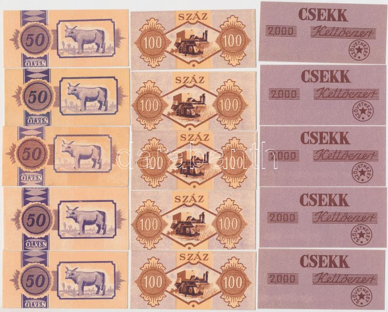 Leírás: ~1960-1970. "50" (5x) + "100" szövetkezeti szükségpénz (5x) + "2000" szövetkezeti csekk (5x) T:I,I-