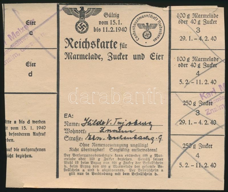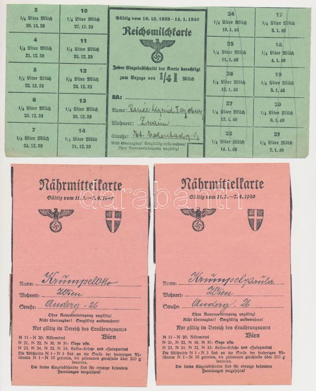 Német 3. Birodalom 1939-1940. 4db élelmiszerjegy, közte tej és vaj kuponok T:II,III