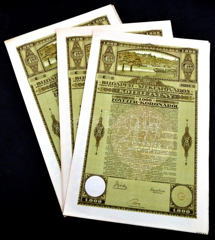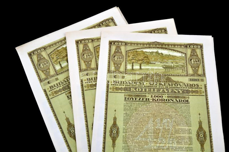 Budapest 1920. "Budapest Székesfőváros" kötelezvények 1000K-...