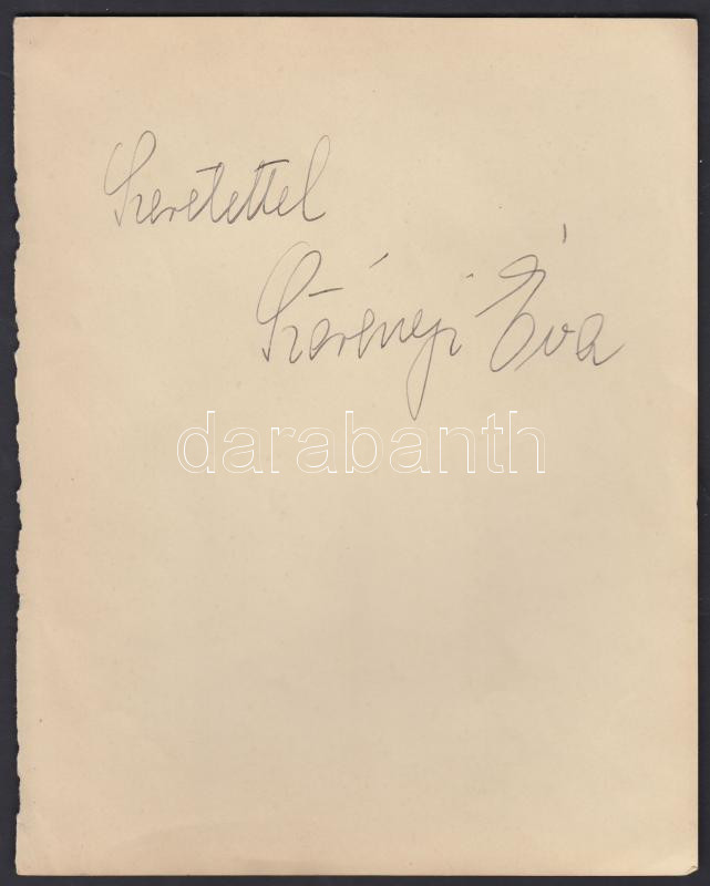 Leírás: Szörényi Éva (1917-2009) színésznő aláírása lapon