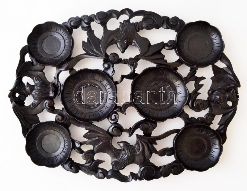 Leírás: Faragott tálca, festett fa, 38×29 cm