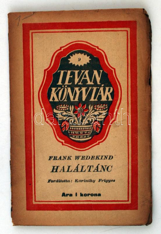 Frank Wedekind: Haláltánc. Három jelenet. Fordította Karinthy Frigyes.... https://www.darabanth.com/hu/267-Gyorsarveres/267.0/Festmeny-mutargy-papirregiseg-egyeb/Konyvek-Egyeb-ritkasagok~40/Frank-Wedekind-Halaltanc-Harom-jelenet-Forditotta-Karinthy-Frigyes-Bekescsaba-1916-Tevan~II1340749