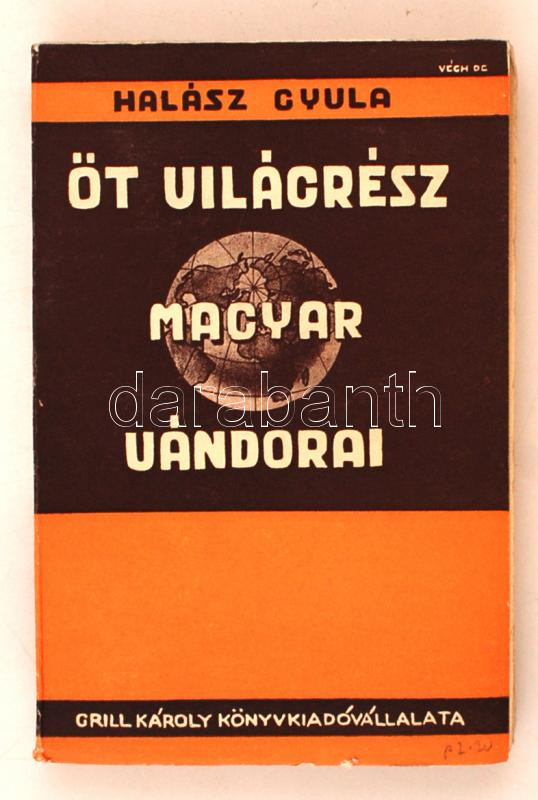 Leírás: Halász Gyula: Öt világrész magyar vándorai. Magyar fölfedezők Benyovszkytól napjainkig. Bp., 1936. Grill. Tűzött papírkötés
