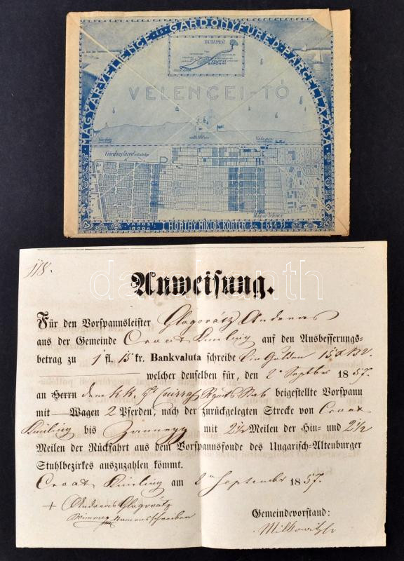 Leírás: 1857 Előfogat utalvány Croat Kimling (Horvátkimlény) + Velencei tó térképes boríték