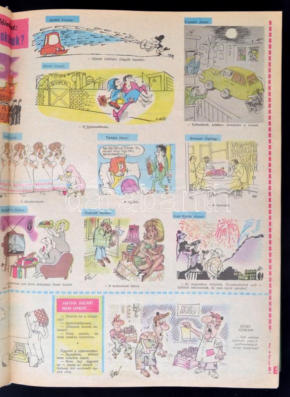A Ludas Matyi c. szatirikus hetilap 1975-ös, XXXI. évfolyamának számai... https://www.darabanth.com/hu/267-Gyorsarveres/267.0/Festmeny-mutargy-papirregiseg-egyeb/Nyomtatvanyok~26/A-Ludas-Matyi-c-szatirikus-hetilap-1975-os-XXXI-evfolyamanak-szamai-egybekotve-Teljes-evfo~II1337407