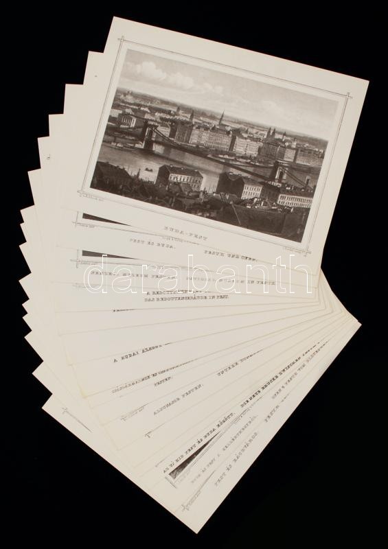 Leírás: Buda és Pest 1856, L. Rohbock 16 metszete, Múzsák Közművelődési Kiadó, Budapest, 1988, 16 darab metszet papírmappában, 21x15 cm.