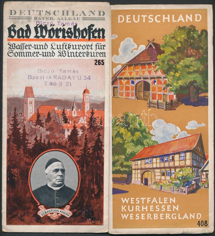 Leírás: cca 1930-1940 2 db Németországgal kapcsolatos utazási prospektus(Westfalen, Kurhessen, Weserbergland, Bad Wörischofen)