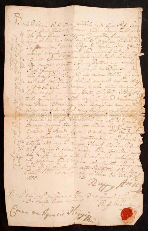 Leírás: 1814 Kolta (Felvidék) A Ruffy csald tagjai között kötött osztályos egyezség