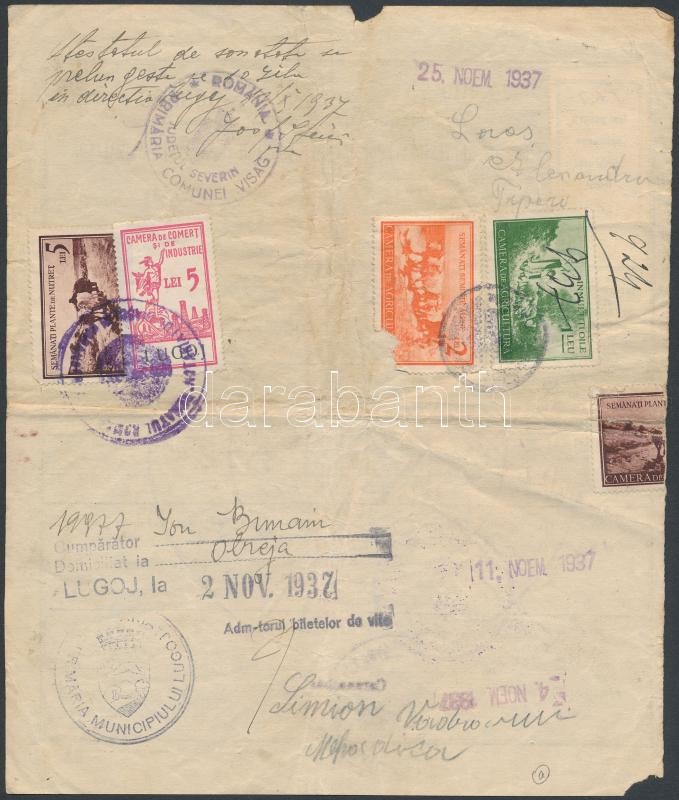 1937 Marhalevél lugosi helyi illetékbélyeggel https://www.darabanth.com/hu/267-Gyorsarveres/267.0/Festmeny-mutargy-papirregiseg-egyeb/Okmanyok~15/1937-Marhalevel-lugosi-helyi-illetekbelyeggel~II1341828